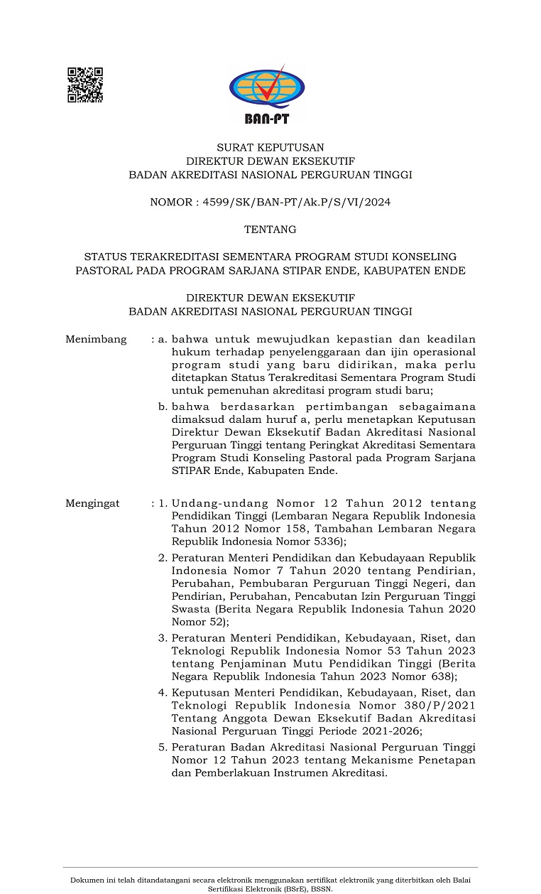 Sertifikat Akreditasi Prodi Konseling Pastoral (download .pdf)